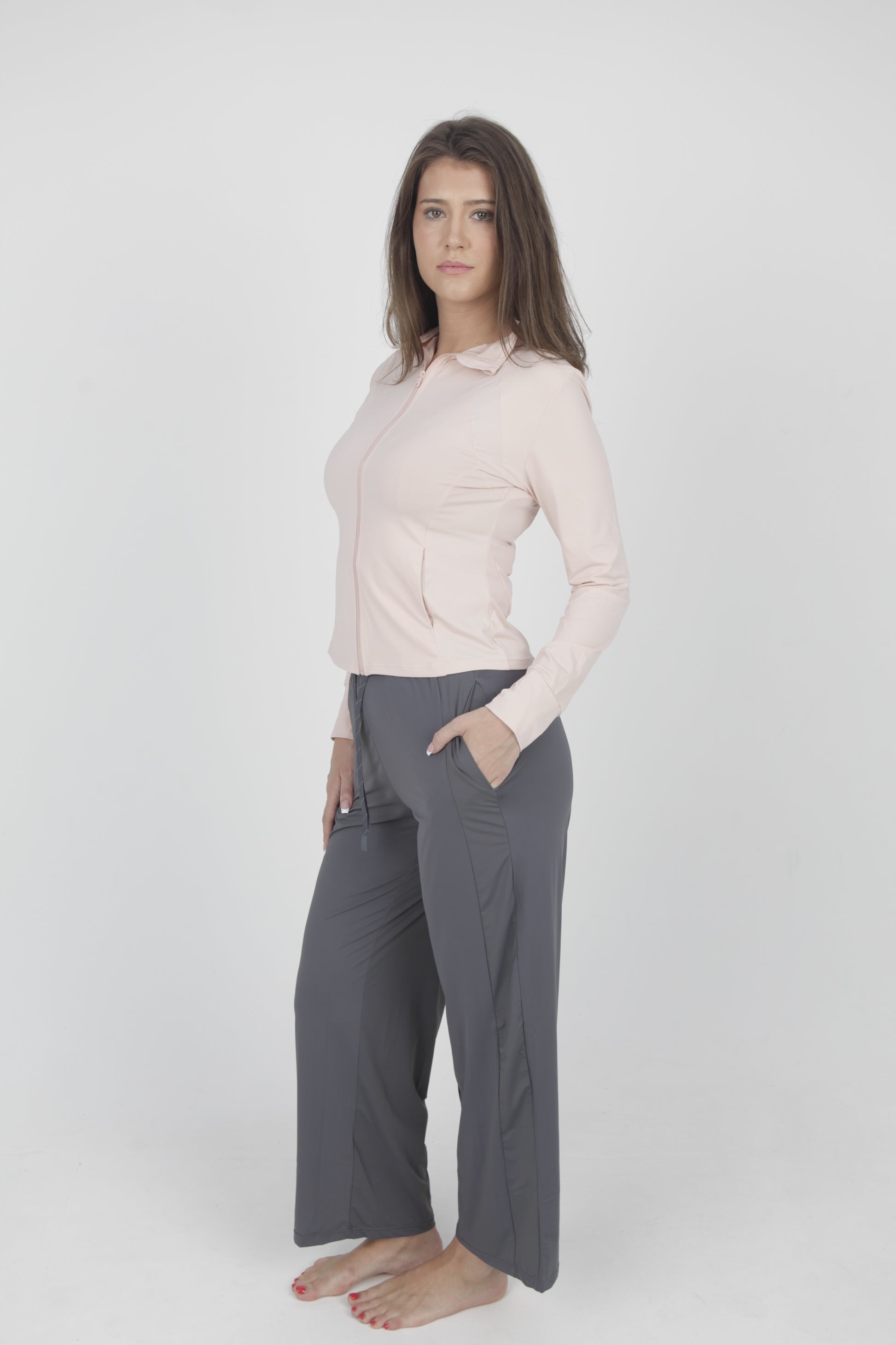 Crafted from a premium 80% Nylon / 20% Spandex blend, the fabric offers a smooth, soft feel with lightweight stretch that moves with your body. The relaxed fit drapes beautifully, while two functional side pockets add everyday practicality. Comfortable, flattering, and easy to style, the JULIA Pants are the perfect balance of laid-back and luxe.